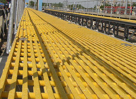 樓梯踏步采用高強玻璃鋼格柵,前緣制作不同顏色的防滑表面封閉條,產品可以固定在拉擠型材等及其他材質的樓梯結構上作為臺階。產品防滑,絕緣質輕,安裝方便,在所有的工業環境作為安全防護使用效果良好。